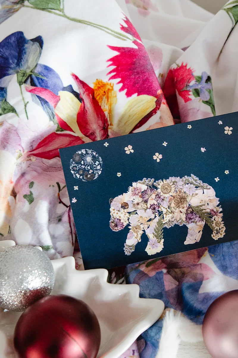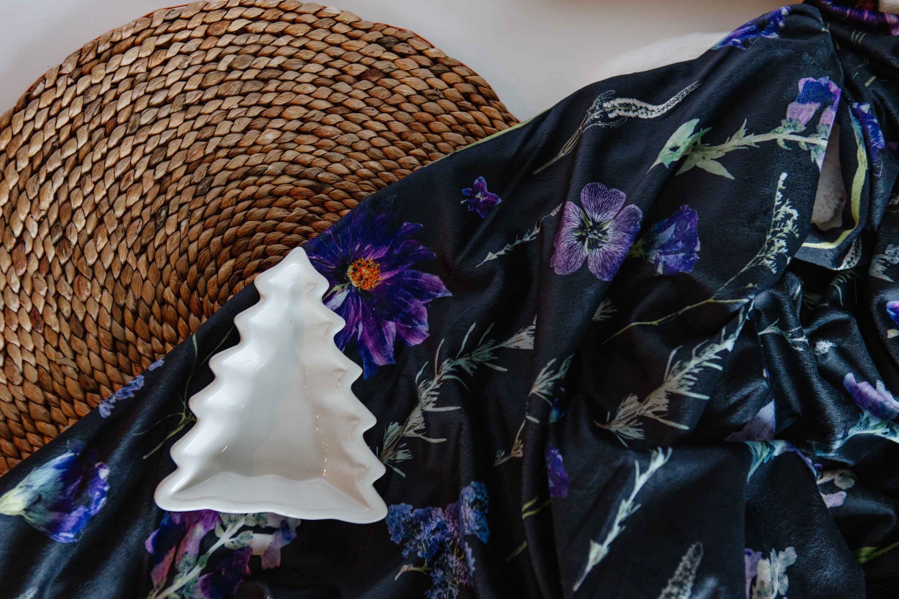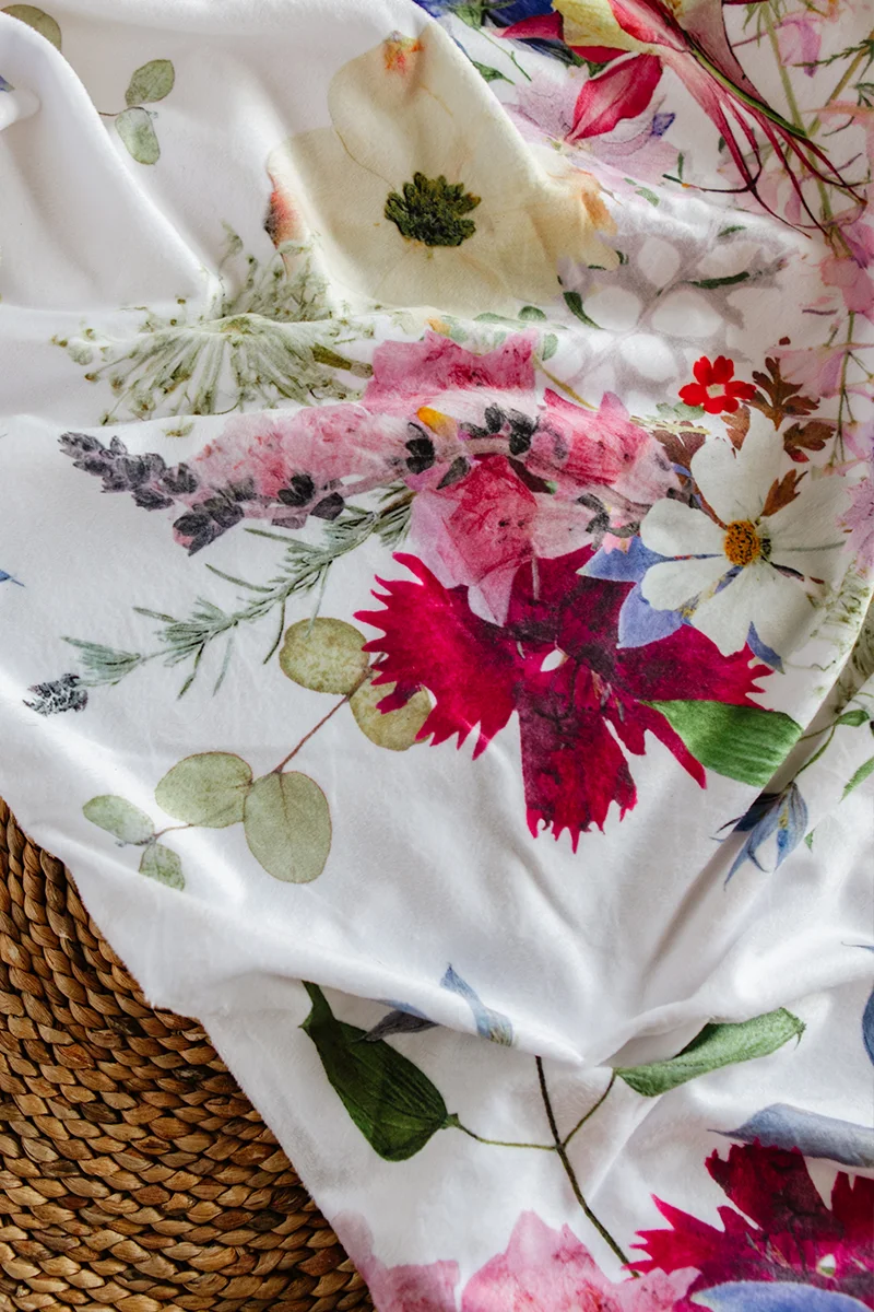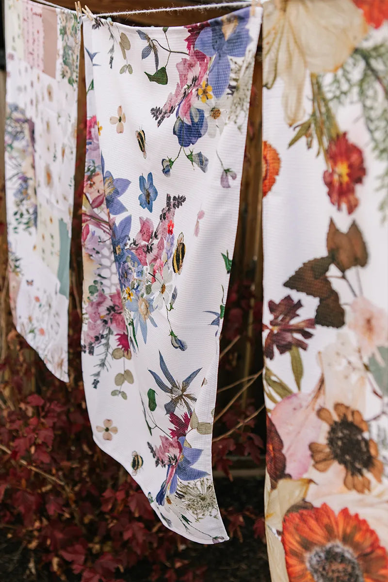 I grow, collect and press flowers and foliage; an art that was passed down to me by my grandmother. Once preserved, I design and construct original artwork with the flowers. From there, I have learned how to digitize my art and create designs that I now utilize in our home goods, ranging from tea towels to baby blankets. All of the digital images are carefully checked for quality control so none of the magic is lost during the print process... the end result is beautiful, crisp and clear and often mistaken for actual pressed flowers.