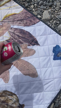 This lightweight, water-resistant outdoor blanket features rich florals made from real pressed flowers grown, preserved and digitized in Canada. With warm browns, soft dusty pinks, and deep indigo accents, it brings golden hour vibes and the quiet romance of wheat fields in the breeze.