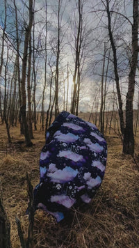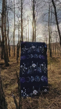 Meet Lavender Haze: a dreamy, double-sided outdoor blanket with pressed floral art and moody purple vibes. Oversized (60” x 80”), ultra-lightweight, and water resistant, it's perfect for beach days, camping, swim lessons, and all of your outdoor adventure needs. Comes with a cute faux leather holder so you can roll it up and go.